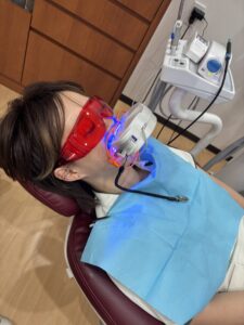 4.専用のホワイトニング薬剤を歯に塗り、特殊なライトをあてて薬を反応させます